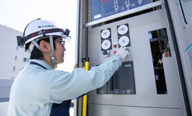 電力会社から供給された実際の電気を、工事を終えた電気設備に送電し、正常に動作するか調整を行います。